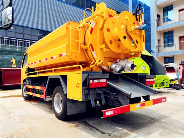 清洗部分:1.8方水箱,采用4mmQ235優(yōu)質(zhì)碳鋼板,水箱兩側(cè)消防接口進水,工具箱一個。采用德國品浮高壓泵170升流量,24兆帕,配60米內(nèi)徑19#高壓管,10個大小不同噴頭一套, 后置式清洗卷盤,帶淋管裝置(用于淋洗高壓管疏通管道過后上面殘留的污物),帶氣吹水功能(用于吹出每次高壓管工作完以后內(nèi)部殘留的水漬,防止天冷結(jié)冰影響下次使用)
